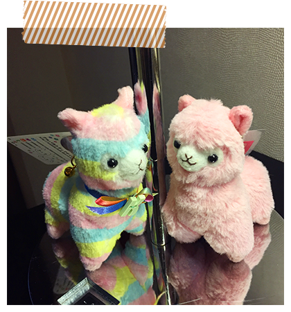 アルパカッソというキャラクターのぬいぐるみが主になっております。