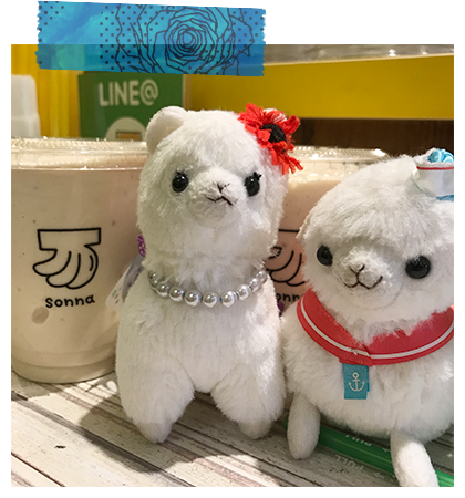 アルパカッソというキャラクターのぬいぐるみが主になっております。