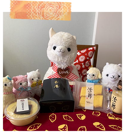 アルパカッソというキャラクターのぬいぐるみが主になっております。