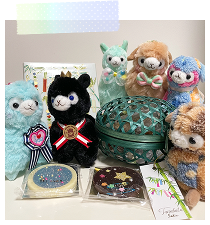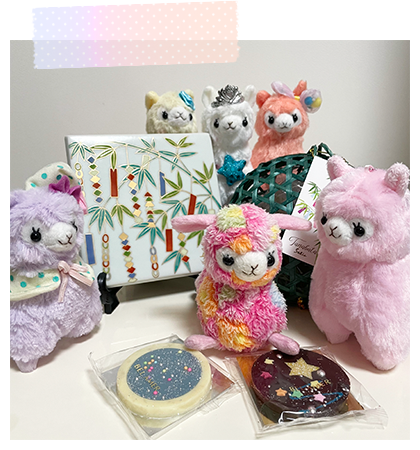 アルパカッソというキャラクターのぬいぐるみが主になっております。