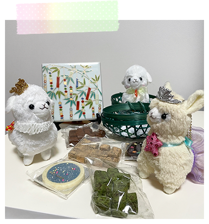 アルパカッソというキャラクターのぬいぐるみが主になっております。