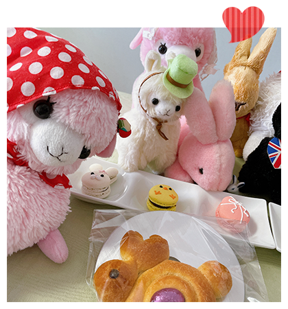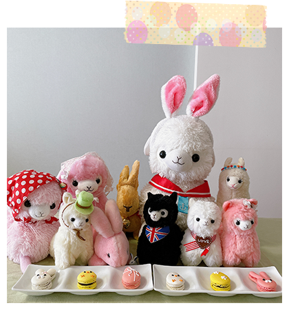 アルパカッソというキャラクターのぬいぐるみが主になっております。
