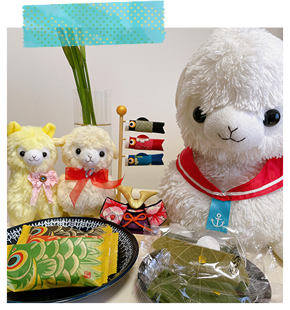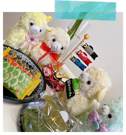 アルパカッソというキャラクターのぬいぐるみが主になっております。