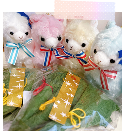 アルパカッソというキャラクターのぬいぐるみが主になっております。