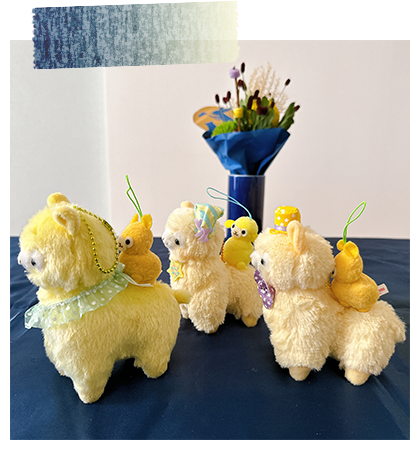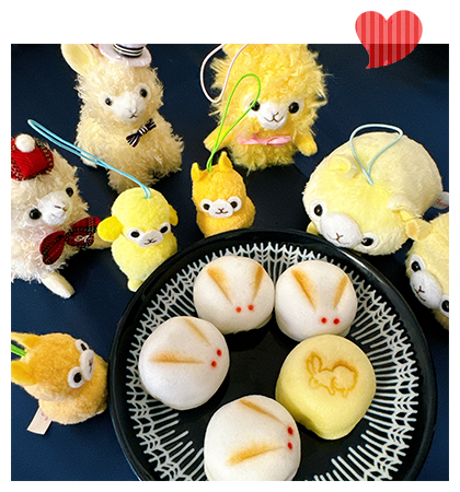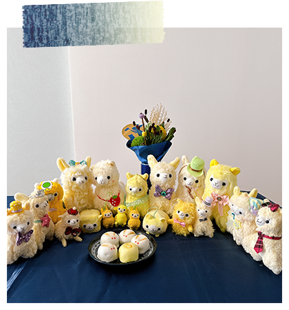 アルパカッソというキャラクターのぬいぐるみが主になっております。