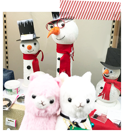 アルパカッソというキャラクターのぬいぐるみが主になっております。