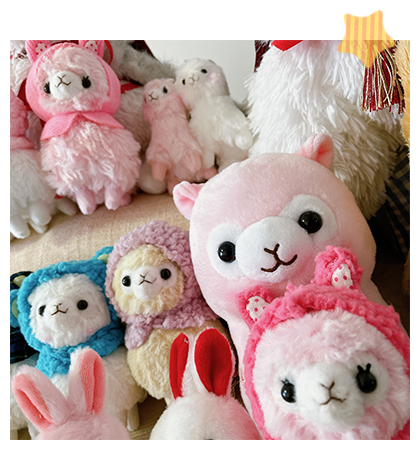 アルパカッソというキャラクターのぬいぐるみが主になっております。
