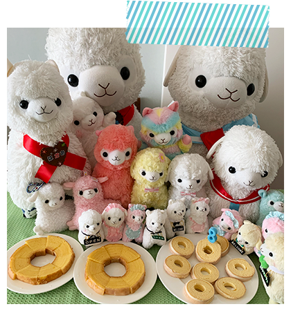 アルパカッソというキャラクターのぬいぐるみが主になっております。