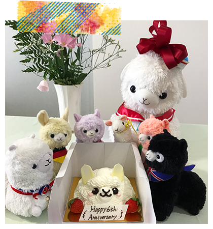 アルパカッソというキャラクターのぬいぐるみが主になっております。