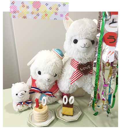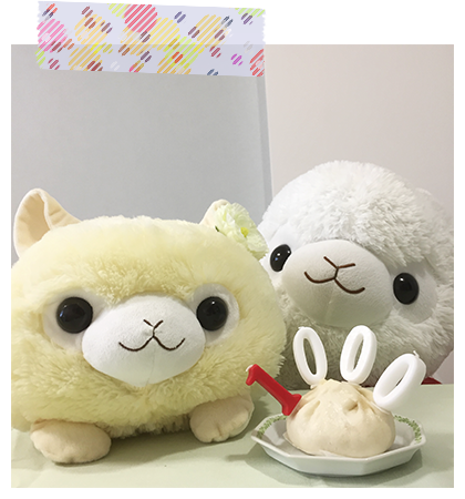 アルパカッソというキャラクターのぬいぐるみが主になっております。