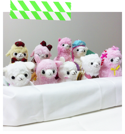 アルパカッソというキャラクターのぬいぐるみが主になっております。