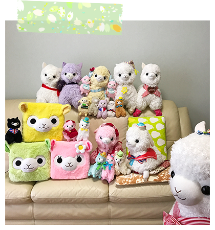 アルパカッソというキャラクターのぬいぐるみが主になっております。