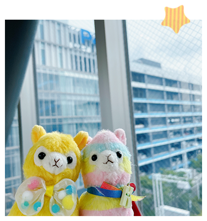アルパカッソというキャラクターのぬいぐるみが主になっております。
