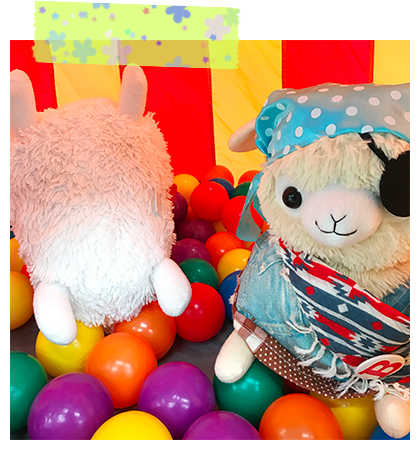 アルパカッソというキャラクターのぬいぐるみが主になっております。