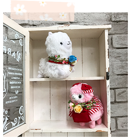アルパカッソというキャラクターのぬいぐるみが主になっております。