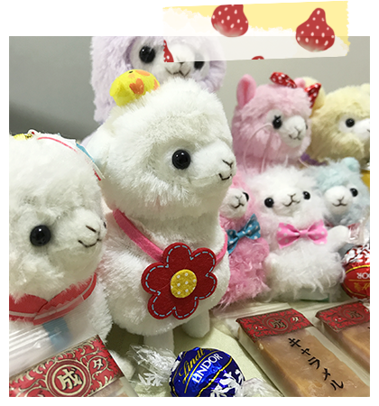 アルパカッソというキャラクターのぬいぐるみが主になっております。