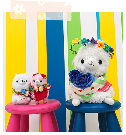 アルパカッソというキャラクターのぬいぐるみが主になっております。