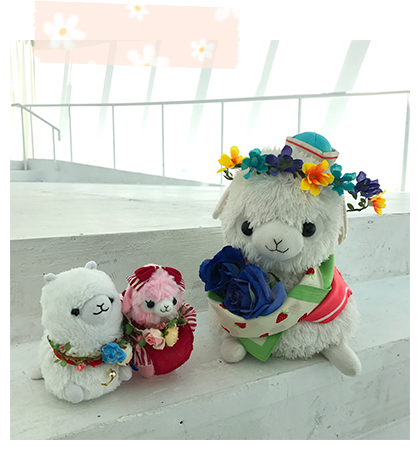 アルパカッソというキャラクターのぬいぐるみが主になっております。