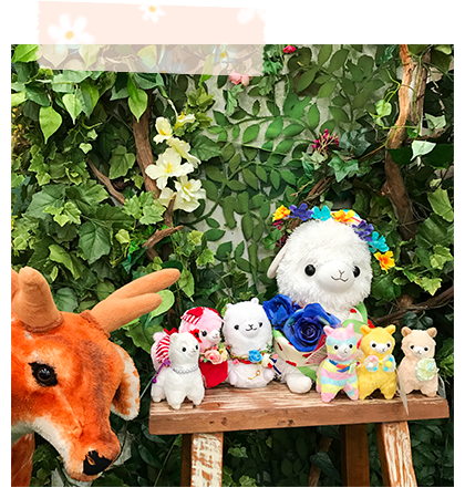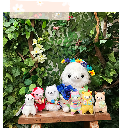 アルパカッソというキャラクターのぬいぐるみが主になっております。