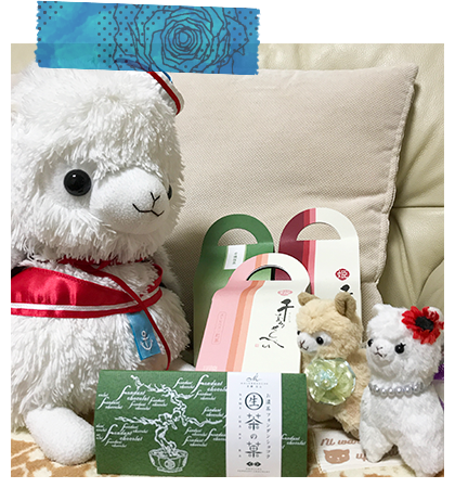 アルパカッソというキャラクターのぬいぐるみが主になっております。