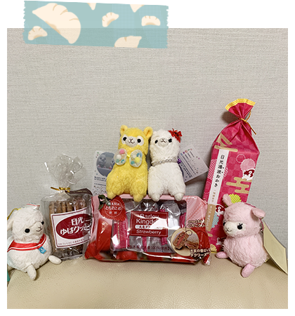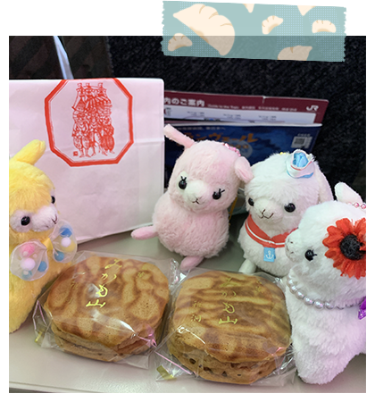 アルパカッソというキャラクターのぬいぐるみが主になっております。