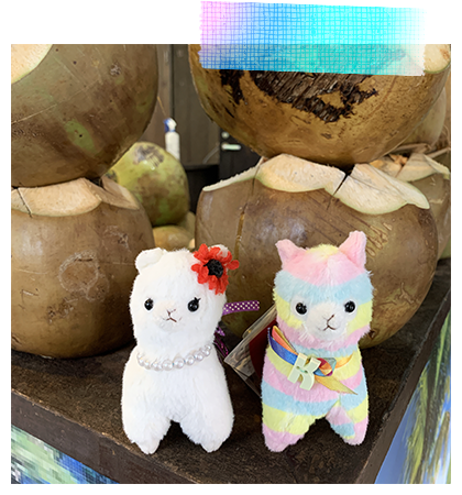 アルパカッソというキャラクターのぬいぐるみが主になっております。
