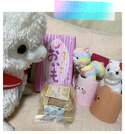 アルパカッソというキャラクターのぬいぐるみが主になっております。