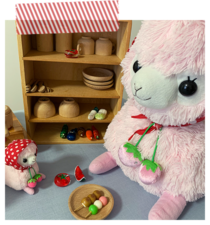 アルパカッソというキャラクターのぬいぐるみが主になっております。