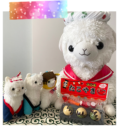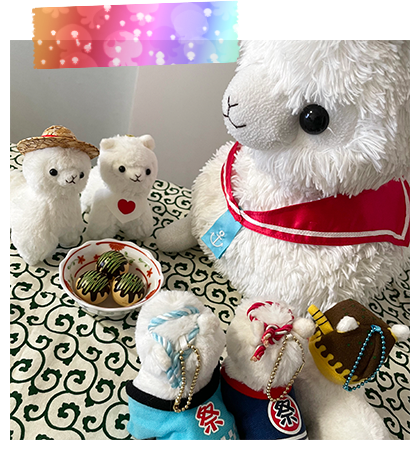 アルパカッソというキャラクターのぬいぐるみが主になっております。