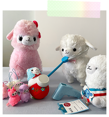 アルパカッソというキャラクターのぬいぐるみが主になっております。