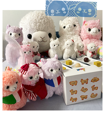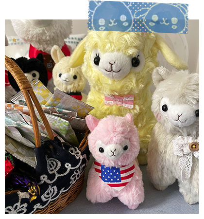 アルパカッソというキャラクターのぬいぐるみが主になっております。