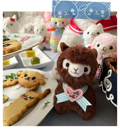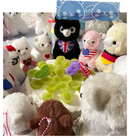 アルパカッソというキャラクターのぬいぐるみが主になっております。