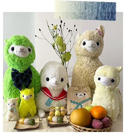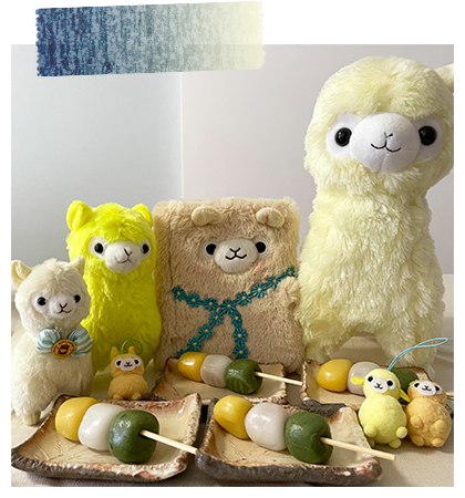 アルパカッソというキャラクターのぬいぐるみが主になっております。