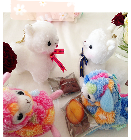 アルパカッソというキャラクターのぬいぐるみが主になっております。