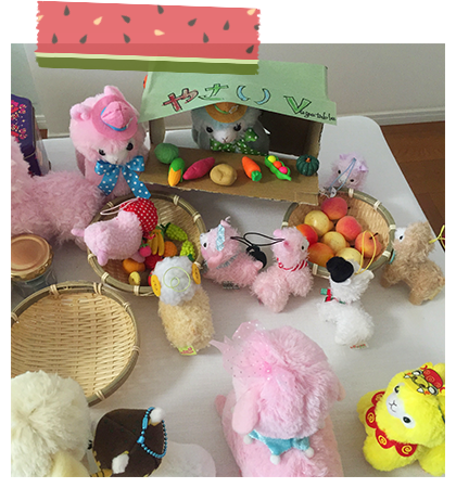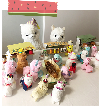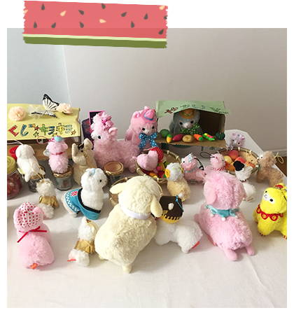 アルパカッソというキャラクターのぬいぐるみが主になっております。