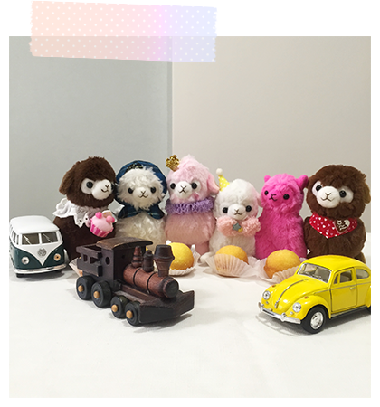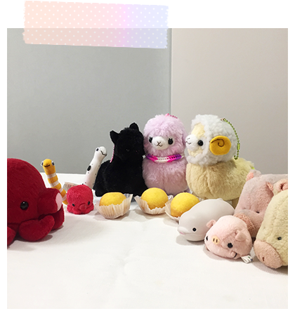 アルパカッソというキャラクターのぬいぐるみが主になっております。