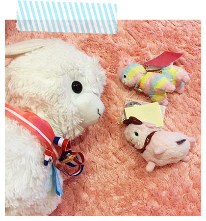 アルパカッソというキャラクターのぬいぐるみが主になっております。