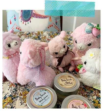 アルパカッソというキャラクターのぬいぐるみが主になっております。