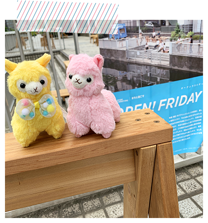 アルパカッソというキャラクターのぬいぐるみが主になっております。