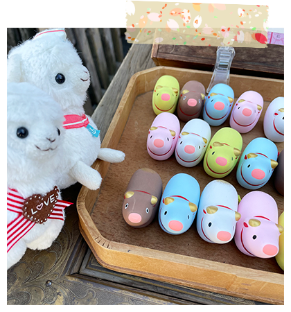 アルパカッソというキャラクターのぬいぐるみが主になっております。