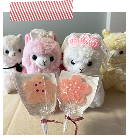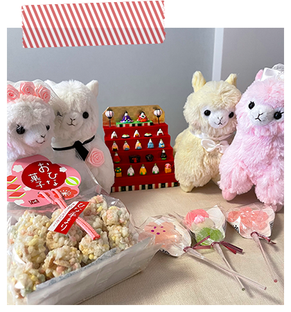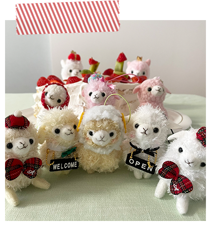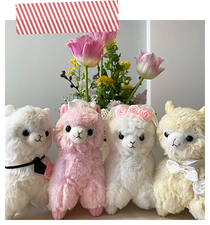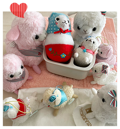 アルパカッソというキャラクターのぬいぐるみが主になっております。